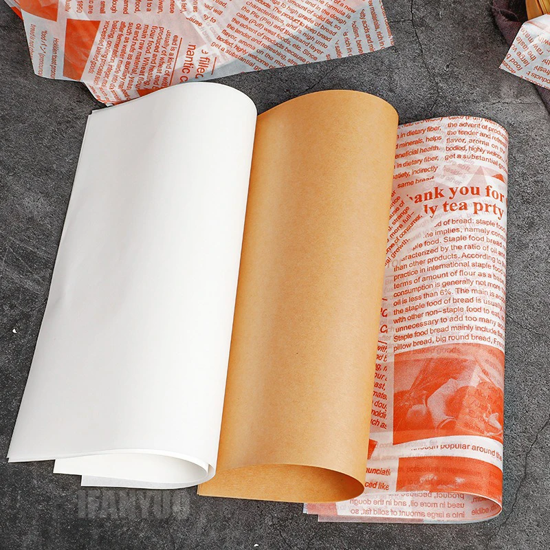sandwich wrapping paper, baking paper, grease-proof food paper, disposable food wrappers, burger wrap paper, fries paper
