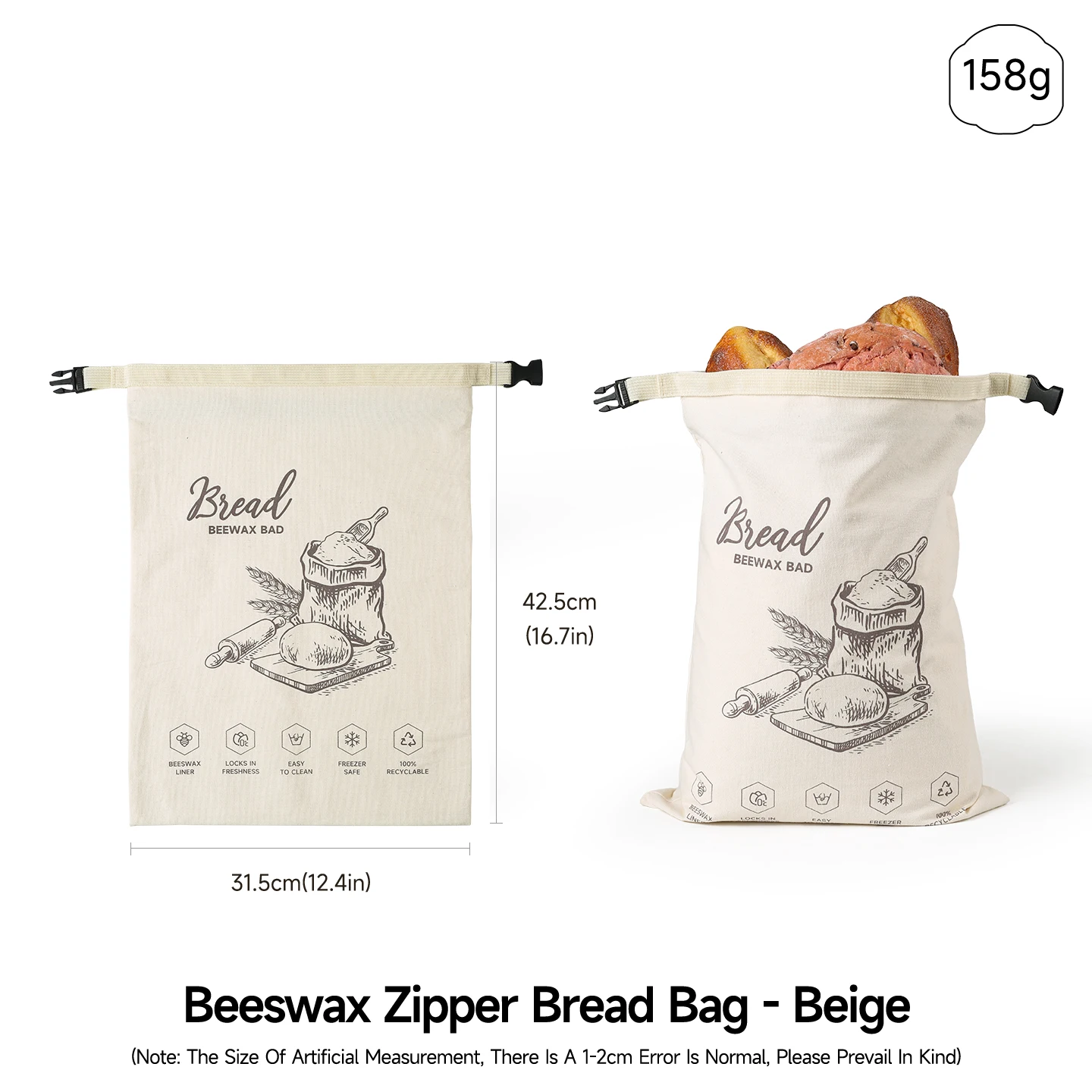 Greware™ Reusable Beeswax Bread Bag with Snap Zipper | Eco-Friendly Food Storage