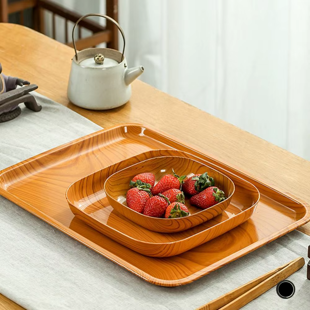 wood grain plastic plates, Japanese style plastic dish, 14cm square plate set, food grade PP plate, imitation wood serving plate, snack dish set, fruit bowl plastic plate, Greware kitchen dish set