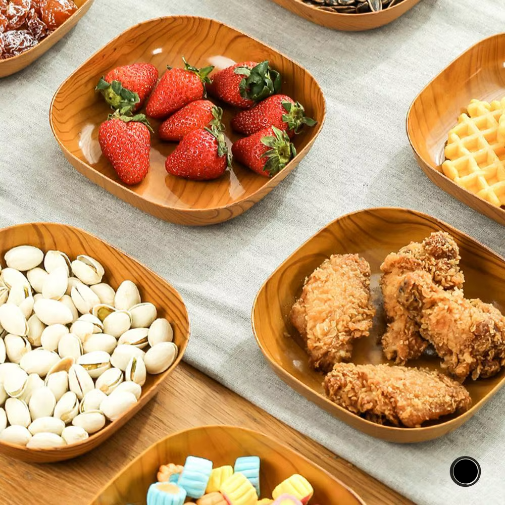 Shop Greware™ 10PCS Japanese-style wood grain plastic dish set. Food-grade PP, anti-drop, easy to clean, 14CM square plates perfect for fruit, snacks, and everyday dining.